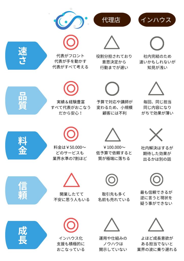 独自性の高い研修とサービスを提供し課題解決をお手伝いします。