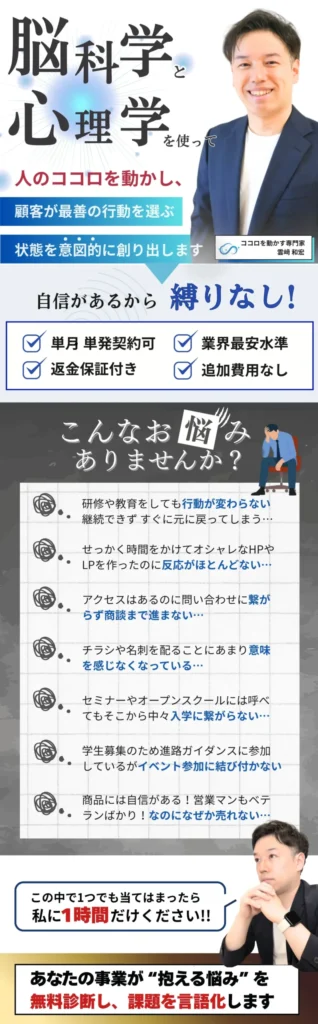 「脳科学×心理学」を駆使し 人のココロを動かす独自性の高い 教育研修・集客デザイン・学生&スクール生 募集支援を香川県より全国へ提供しております。