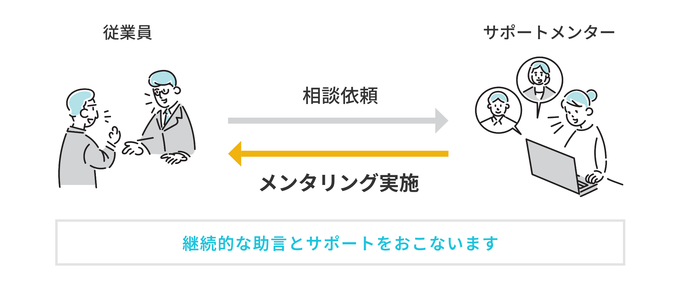 継続的に助言やサポートを行います。