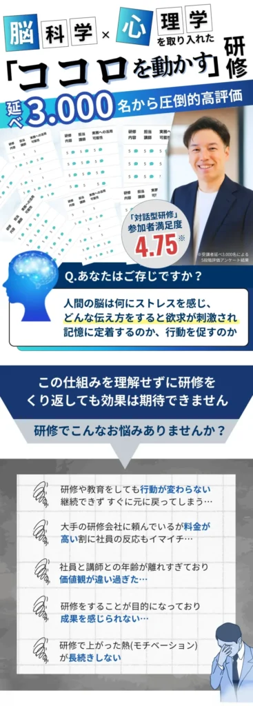 1つでも当てはまるなら、脳科学と心理学を取り入れた研修をご検討ください