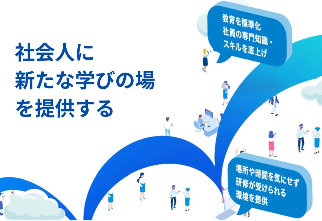 社会人のスキルアップやキャリア形成を支援する学び直しの場を提供。会社に福利厚生として導入し 退社後の時間(19:00-20:00)にオンラインで1時間程度で様々な研修を実施されている事例もございます。お気軽にお問合せください。